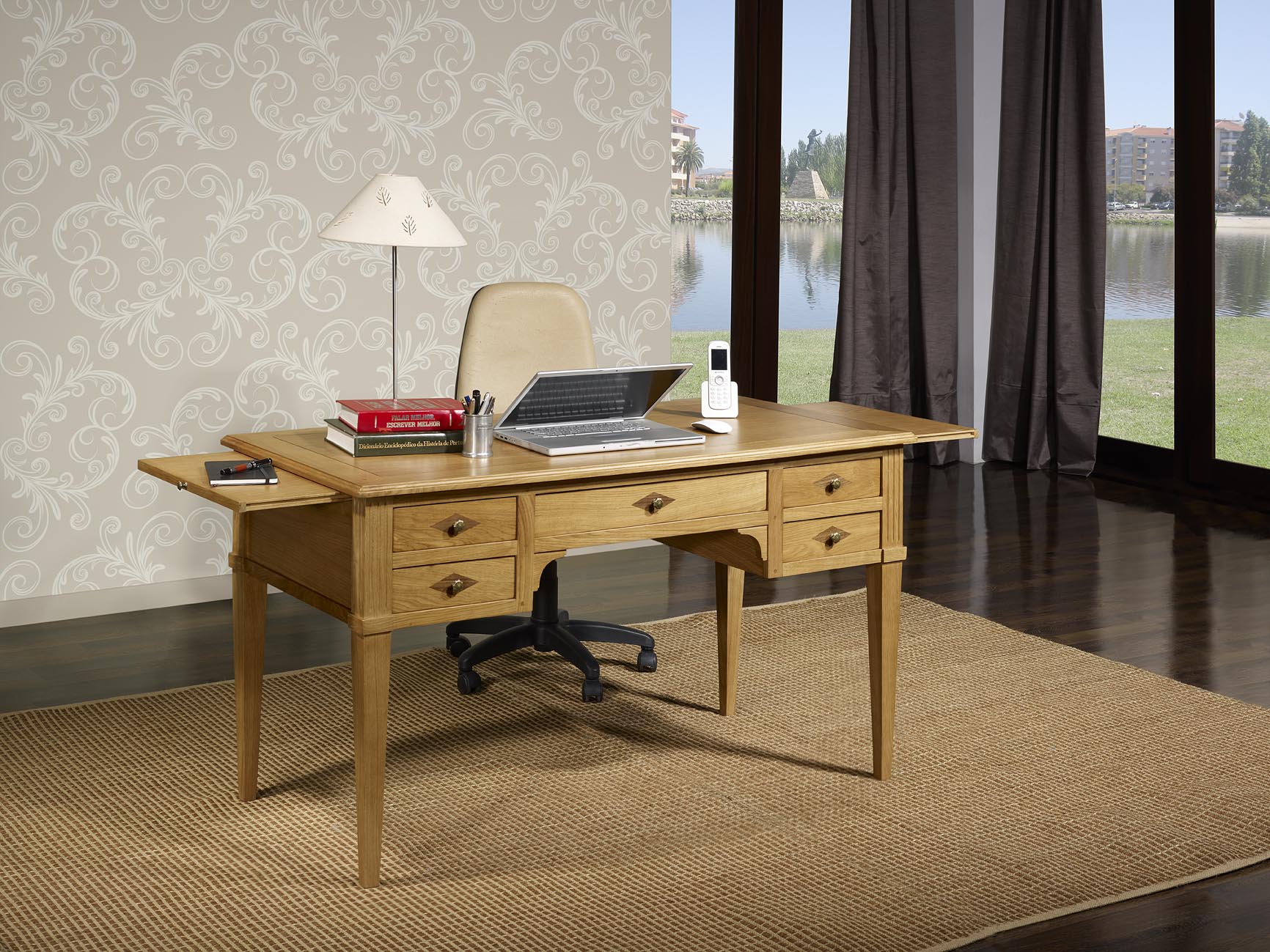 Solicite nuestras muestras de acabado gratuitasEscritorio / despacho estilo directorio fabricado en madera de roble macizo