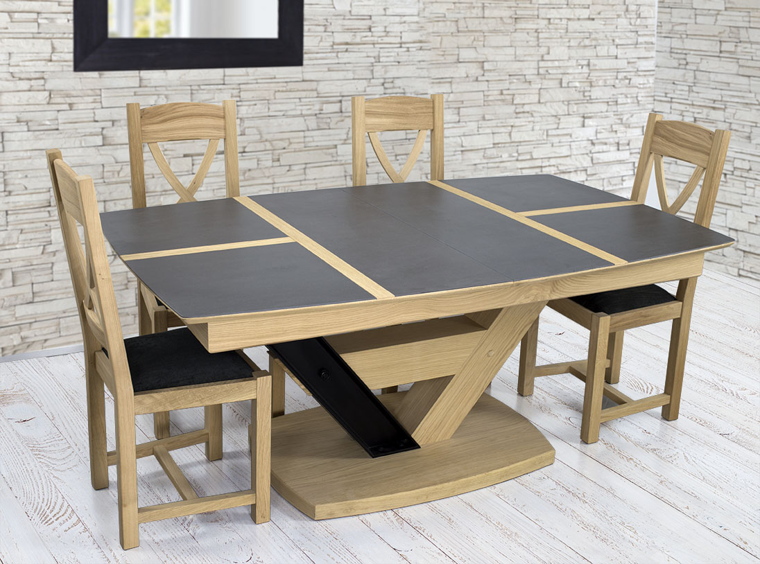 Solicite nuestras muestras de acabado gratuitasMesa de comedor rectangular ligeramente ovalada fabricada en madera de roble maciza, estilo contemporáneo