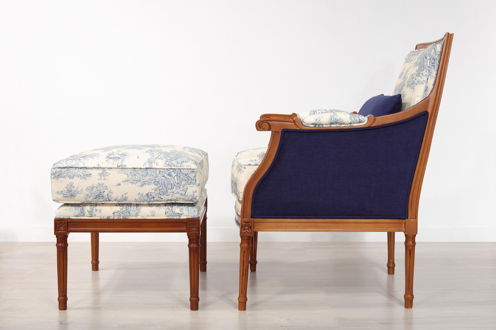 Request free samples of our stainsLouis XVI Armchair in Solid Cherry Wood with Matching Footrest