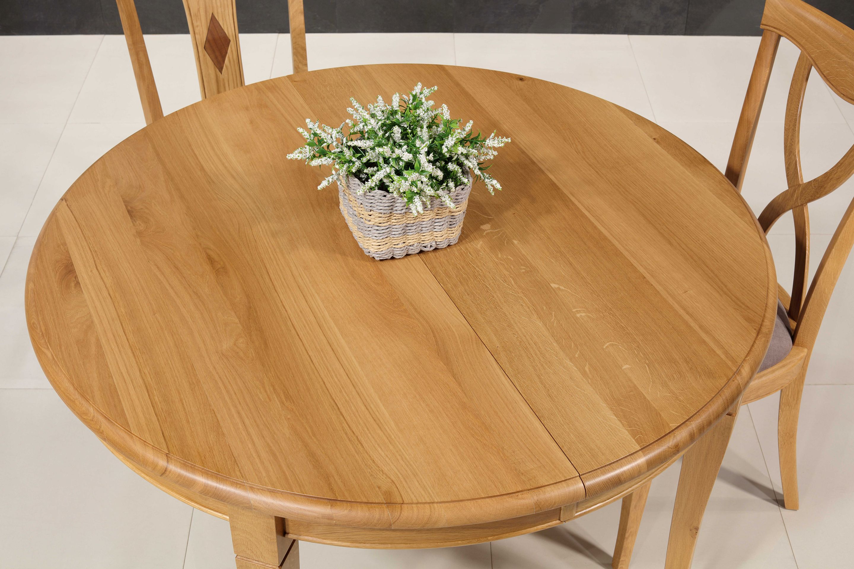 Solicite nuestras muestras de acabado gratuitas🪑 Mesa redonda Louis Philippe en roble macizo – Con extensiones