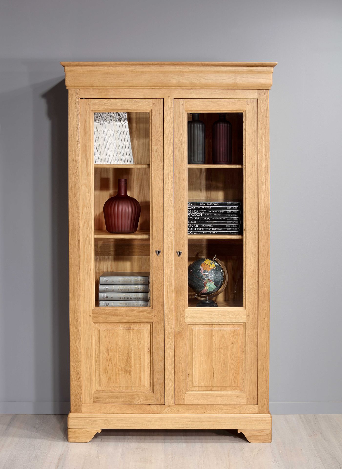 Solicite nuestras muestras de acabado gratuitas📚 Biblioteca Antoine de 2 Puertas en Roble Macizo – Estilo Luis Felipe, Ancho 110 cm